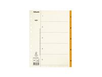 Slitstark Esselte Servo FSC A4-register med fem förstärkta flikar Esselte® avdelare ger enkel märkning och sortering med 1 förtryckt blad med 6 perforerade hål och en justerbar indexflik. Esselte-avdelare är ett viktigt verktyg för organisering och kategorisering av kontors-, skol- och viktiga hemdokument. Varje Esselte-avdelarblad levereras perforerat med 6 hål, vilket gör dem enkla att använda med en mängd mappar och pärmar med dokument. Du kan både skriva och trycka på FSC-certifierade Mylar Esselte-avdelare och de kan skrivas ut med ett vanligt A4-format. Varje Esselte-avdelarblad i kartong levereras förtryckt med 5 tydligt märkta utrymmen.