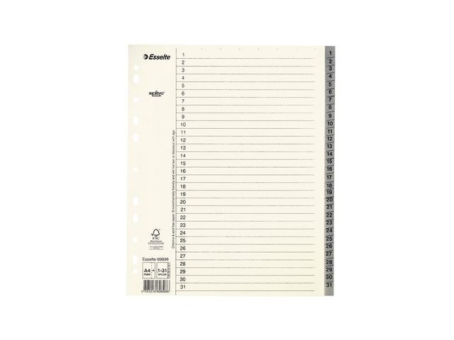 Esselte® Servo förtryckta avdelare ger en enkel och effektiv lösning för att organisera dina dokument i pärmar och mappar. Dessa Esselte®-avdelare är perfekta att använda på kontor och i skolor. De passar utmärkt för organisering av dokument och pärmar. Med omslagsbladet kan du enkelt märka och identifiera innehållet i mappen, medan indexavdelarna har flikar för enkel avdelning och referens. Avdelarna levereras med perforeringar på sidorna och är kompatibla med 2- och 3-ringpärmar. Tillverkas av 110g gultonat papper som är klor och syrafritt.