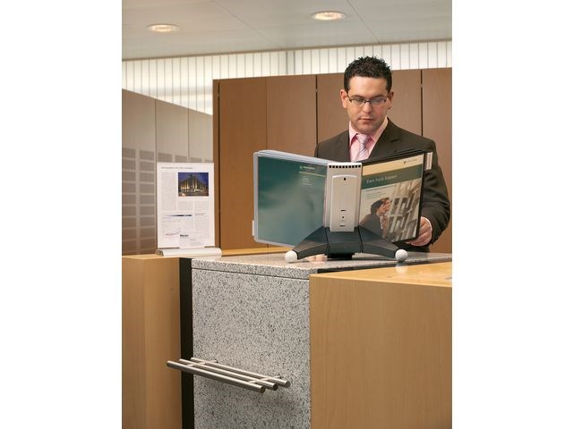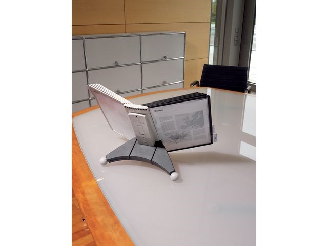 Robust bordsstativ med 10 SHERPA visningspaneler i A4-format. Kompletta uppsättningar inklusive ett modulärt bordsstativ, SHERPA visningspaneler i A4-format och indexflikar med tomma insticksetiketter. Bordsenheterna är stabila... Läs mer