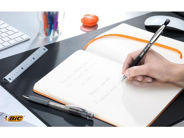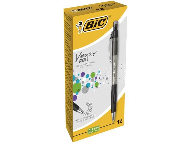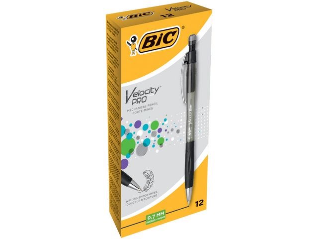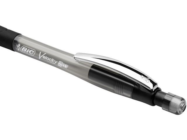 Pennan BIC® Velocity Pro är en påfyllningsbar stiftpenna med ett bekvämt gummigrepp. Pennan BIC® Velocity Pro passar utmärkt för dagligt skrivande. Det bekväma gummigreppet ger stadig hand, så att du kan skriva jämnt och tydligt. Pennans spets ger jämna linjer, så att föreläsnings- och mötesanteckningar blir klara och tydliga. Du kan ha stiftpennan på dig hela tiden genom att fästa den på bland annat skjortficka, anteckningsblock och mappar. Den indragbara metallspetsen gör att du lugnt kan bära den i fickan eller i väskan utan att det blir hål, och den tåliga klickmekanismen ger långvarig skrivglädje. Pennan har stiftrör och fjädrande mekanism som hindrar stiftbrott.