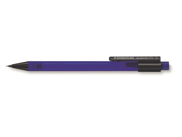 Den mekaniska stiftpennan STAEDTLER Graphite 777 har ett gummigrepp för extra komfort. Den här mekaniska stiftpennan har ett stiftskydd för ökad hållbarhet så att du kan fortsätta att skriva utan att stiftet går av. Gummigreppet gör denna mekaniska stiftpenna lätt att greppa och gör det bekvämt att skriva. STAEDTLER Graphite 777 har ett 0,7 mm stift som passar perfekt för framträdande och intensiv skrift. Den har ett extra stort suddgummi som är PVC- och latexfritt. Den förkromade metallspetsen skyddas av en stifthylsa när den inte används, vilket gör den mekaniska pennan ficksäker. Korken med fickklämma gör den enklare att bära med sig.