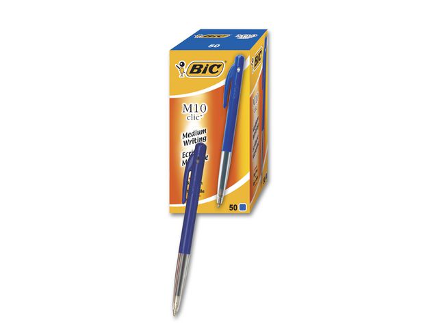 BIC® M10 Clic-kulspetspennan ger ett jämnt bläckflöde. Den här kulspetspennan är utmärkt för daglig användning i hemmet, kontoret och klassrummet. Dess karaktäristiska design ser snygg ut i alla miljöer. Kulspetspennan BIC® M10 Clic använder en mediumspets som hjälper dig att skapa olika skrivstilar. Pennan har en praktisk fickklämma, så att den är lätt att bära med sig i fickan. Skrivlängd minst 1900 meter