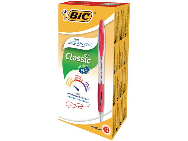 Kulspetspennan BIC® AtlantisT Classic har EasyGlide-bläck som gör det behagligt att skriva. Kulspetspennan BIC® AtlantisT passar utmärkt för dagligt skrivande. Det bekväma vadderade greppet gör att du håller pennan stadigt, och med EasyGlide-bläcket blir skriften tydlig och jämn. Pennans 1mm spets ger jämna linjer, så att dina föreläsnings- eller mötesanteckningar blir klara och tydliga. Pennan har en praktisk fickklämma som gör att du kan ha den nära till hands hela tiden genom att fästa den på skjortfickan, anteckningsblocket eller dina mappar. Den indragbara designen gör att du aldrig tappar bort en pennkork igen. Den påfyllningsbara pennan finns i en mängd olika färger och ger perfekt resultat varje gång.
