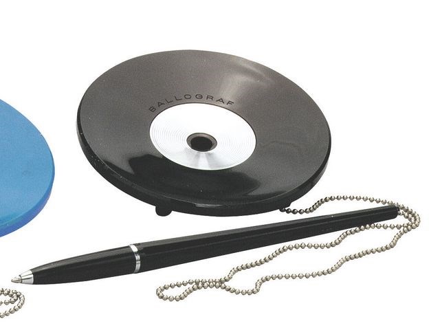 - Pennan är fäst vid den stadiga basen via en metallkedja