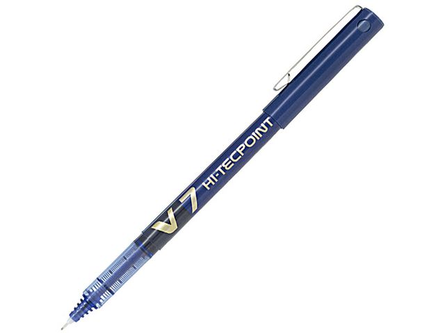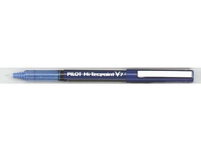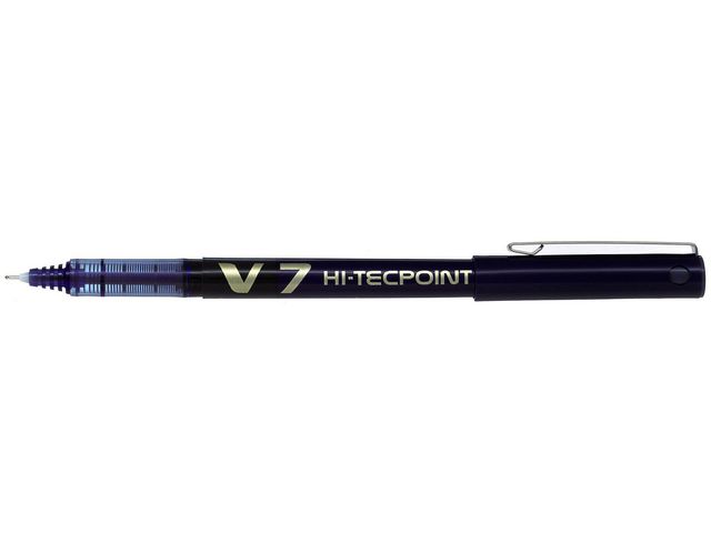 Pennan Pilot Hi-Tecpoint V7 är en rollerballpenna med mediumspets och bläckregulator, som ger ett jämnt bläckflöde. Denna rollerballpenna med flytande bläck har en nålformad spets i rostfritt stål som ger lätta, mjuka och exakta penndrag. Dess hållbara kula i hårdmetall, med skåror för extra stöd och stadig vridning, behåller sin form länge. Denna rollerballpenna har en unik V-systemmekanism som reglerar bläckflödet, och ser till att det är jämnt och fast, samt ett litet fönster som visar bläcknivån. Pennan levereras komplett med kork som skyddar pennan och en fickklämma som gör den praktisk att använda.