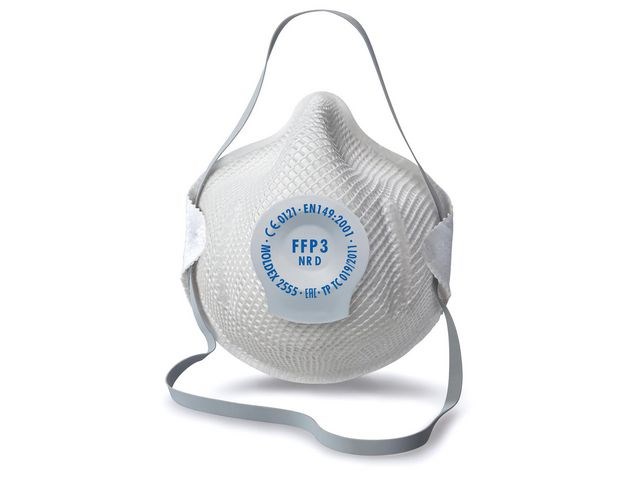 Ett FFP3-klassat andningsskydd med ventil som skyddar mot damm, dimma och ångor. Andningsskydd MOLDEX 2555 FFP3 är en mycket hållbar mask med kraftig och slitstark struktur, som gör att den behåller sin form. Tack vare ActivForm så passar den automatiskt ansiktet. Inga justeringar eller näsklämmor krävs. Justerbart band gör den snabb, enkel och säker att ta av och på. Testad och certifierad enligt EN149:2001+A1:2009. Produkten är CE-märkt. Andningsskydd är avsedda för engångsbruk och skyddar användaren mot skadliga ämnen och partiklar i inandningsluften. Det kan vara allt från gaser och partiklar som uppstår vid exempelvis svetsning till luftburna virus. Andningsskydden finns i 3 klasser enligt europeisk standard, FFP1, FFP2 och FFP3.