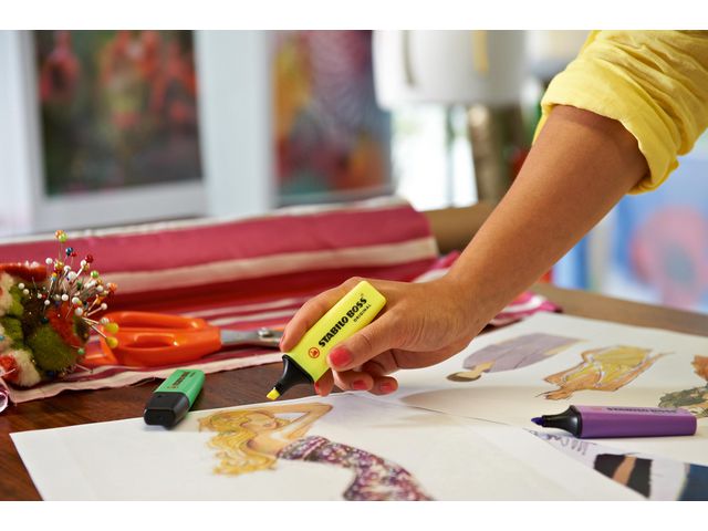 Markera text och viktig information med den klassiska överstrykningspennan STABILO® BOSS® ORIGINAL med Anti-Dry-Out-teknik. Originalöverstrykningspennan STABILO® BOSS® har ett tillförlitligt vattenbaserat bläck med Anti-Dry-Out-teknik så att korken kan vara av under 4 timmar utan att den torkar ut. Den kan användas på nästan alla typer av papper. Den har en snedskuren spets som ger dubbla linjebredder på 2 respektive 5 mm så att du kan använda den i många olika sammanhang, till exempel för att skriva, stryka under eller markera. Överstrykningspennorna från STABILO® passar perfekt för studenter och yrkesverksamma som måste läsa och markera viktig information i texter. Överstrykningspennan finns i en mängd olika attraktiva färger och har den klassiska BOSS®-formen med en platt pennkropp som inte rullar iväg.