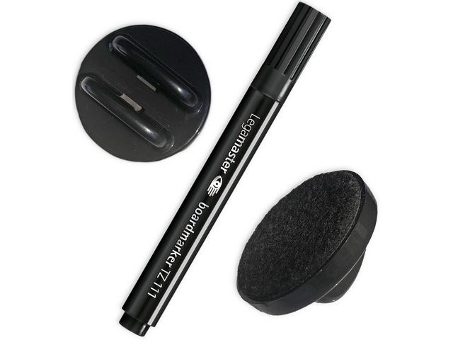 Magnetisk taveltorkare för små whiteboardtavlor. Svart penna medföljer. 5 x 4,5 cm.