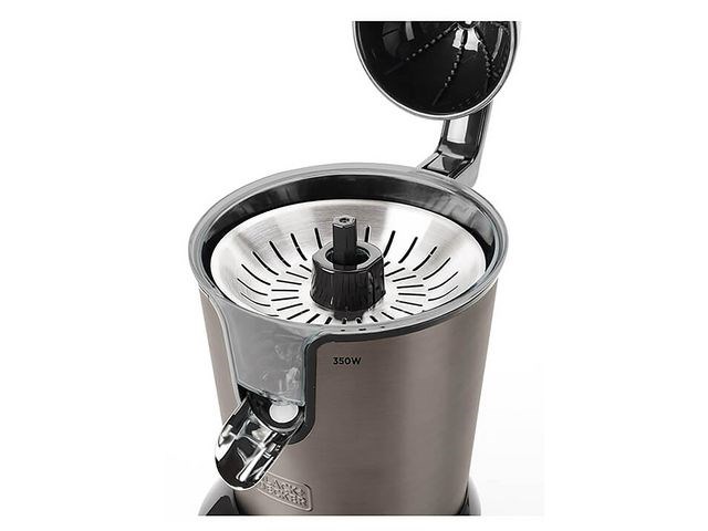 Pressa saften från alla dina favorit citrusfrukter snabbt, rent och enkelt. Dess professionella motor med 350W effekt erbjuder en snabb och exakt extraktion av saften från alla citrusfrukter. Det faktum att det är en citruspress med spak innebär att mindre tryck måste utövas på frukten och därigenom erhålla maximal mängd saft. Citruspressen aktiveras automatiskt när spaken utövar tryck på frukten. För att hanteringen ska bli mer bekväm och stabil för dig har spaken ett mjukt grepp och basen har sugkoppar för att fästa den på din bänkskiva. Dessutom har juicepressen 2 koner i olika storlekar så att du kan pressa alla typer av citrusfrukter, inklusive apelsiner, lime, citroner och grapefrukt. Dess hällpip har två olika system. Ett system som gör att du kan lagra juice i tanken på 650 ml, eller så kan du välja den kontinuerliga hällningen som går direkt i glaset och du kommer att kunna stoppa den när du har önskad mängd juice. Pressen har också ett anti-droppsystem så att du inte släpper ut en droppe under processen. För att göra rengöringen enklare för dig är filtren och konerna på den elektriska citruspressen helt avtagbara och kan diskas i diskmaskin. Alla komponenter är BPA-fria. Den är mycket lätt att rengöra eftersom alla dess komponenter är avtagbara och kan diskas i diskmaskin.