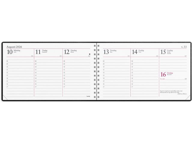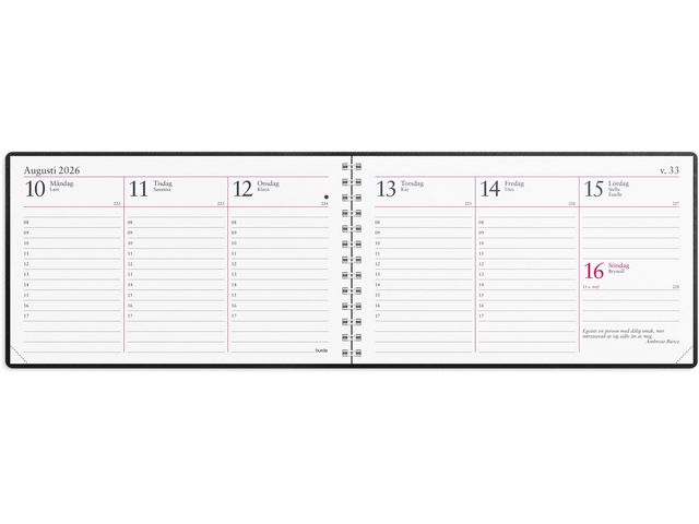 - Layout: Stående. Vecka/uppslag. Timindelning 8-17