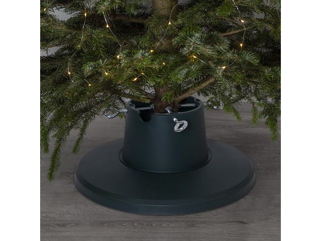 En traditionell julgransfot Granfot med en grön plastbehållare och bas. För granar med en basdiameter mellan 3,5-10,5cm och en höjd upp till 210cm. Vattenbehållaren rymmer ca 1,6 L. Observera att skruvarna sitter fast i botten.