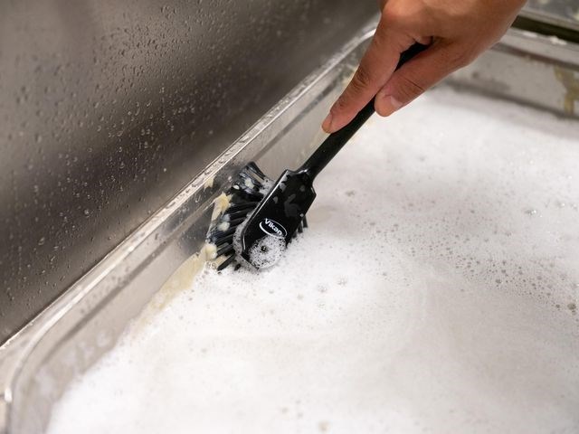 - från kök till maskinpark. Denna robusta diskborste med integrerad skrapkant är utvecklad för att klara tuff smuts
