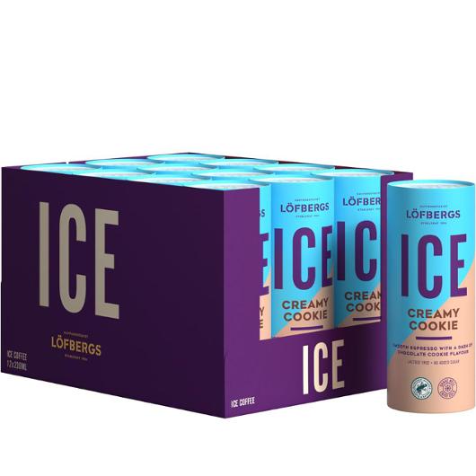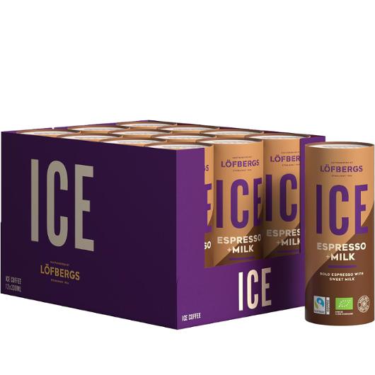 - Löfbergs klassiska iskaffe. Löfbergs ICE Latte Macchiato är en klassisk iskaffe med smak av krämig mjölk och en touch av espresso. Kaffedryck med mjölk, sötningsmedel och naturligt förekommande sockerarter. ICE passar lika bra på stranden en varm sommardag som en vinterdag i stugan. Du behöver inga krångliga recept, servera som den är, väl omskakad och gärna kyld eller serverad med några isbitar! Den unika förpackningen, CartoCan, kastar du i återvinningen för pappersförpackningar och den lilla förseglingen (locket) i återvinningen för metall. ICE behöver inte förvaras som kylvara, däremot bör den inte förvaras över 25°C. Produkten är rättvisemärkt och ekologisk.