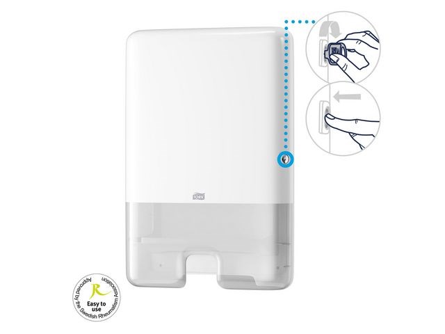 - snygg och modern dispenser som matar ut ett ark i taget vilket minskar förbrukningen. Tork Xpress Dispenser Multifold Handduk i Elevation design är lämplig för miljöer med krav på både komfort och hygien. Denna kompakta och attraktiva dispenser minskar pappersförbrukningen genom utmatning av ett ark i taget. Tork Elevation dispensrar har en funktionell, modern design som skapar ett långvarigt intryck hos dina besökare. Kompatibel med H2 handdukar.