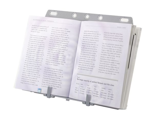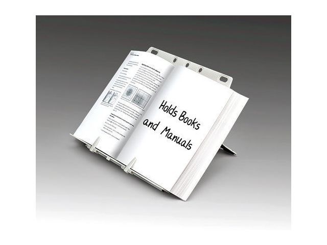 BookliftT dokumenthållare från Fellowes® är speciellt utformad för stora referensmaterial och agendor och gör det enkelt att skriva dokument BookliftT dokumenthållare från Fellowes® gör ditt referensarbete och dokumentskrivning till en bekväm och enkel uppgift då den är specifikt utformad för referenslitteratur, agendor och stora handböcker. Få tillgång till ditt forsknings- eller referensarbete med ett ögonkast tack vare hållaren i stafflimodell med 9 höjdjusteringar som gör att du kan visa böcker i praktiskt taget alla storlekar i en perfekt vinkel. BookliftT har 2 justerbara klämmor för att hålla sidorna öppna och den glidfria basen viks ihop plant för kompakt lagring.