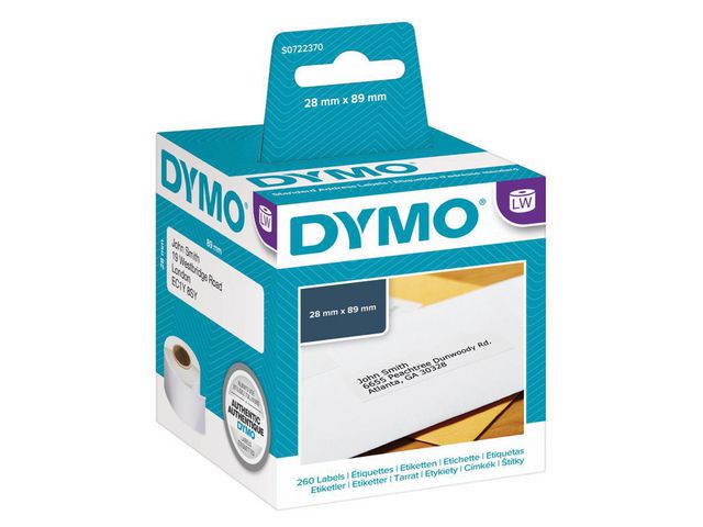 Dymo LabelWriter¿ adressetiketter i standardutförande har en permanent självhäftande baksida som enkelt kan avlägsnas från underlaget. DYMO® LabelWriterT adressetiketter i standardutförande ger snygga, skräddarsydda etiketter på 89 x 28 mm som är perfekta för långa adresser, filhantering och organisation i hemmet eller på kontoret. LabelWriterT-etiketter ger högkvalitativa utskrifter med maximal prestanda. Etiketterna lossnar lätt utan att lämna rester och kan skrivas ut en i taget vid behov för att skapa mindre avfall och undvika trassel. Tack vare termisk överföringsteknik behövs varken bläck eller toner vid utskrift. Två rullar varav varje rulle innehåller 130 etiketter, vilket ger en kostnadseffektiv lösning för dina märkningsbehov.