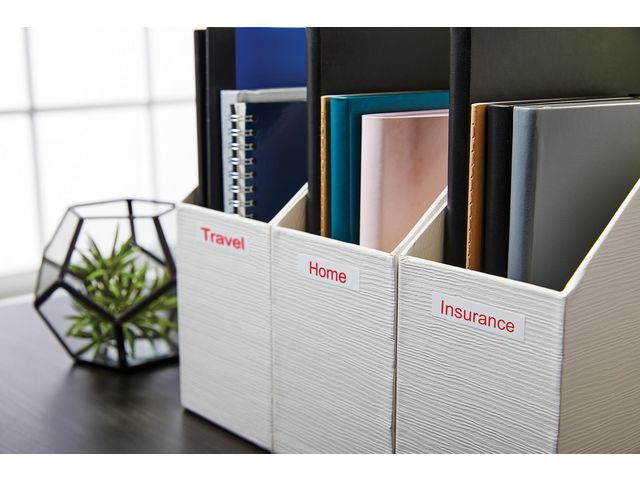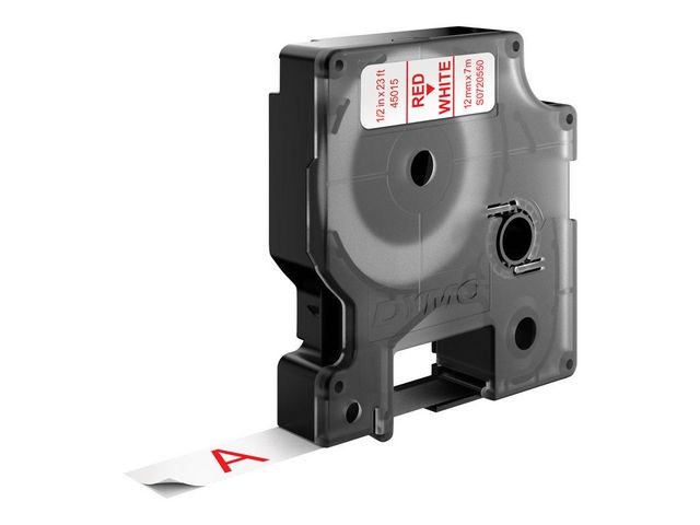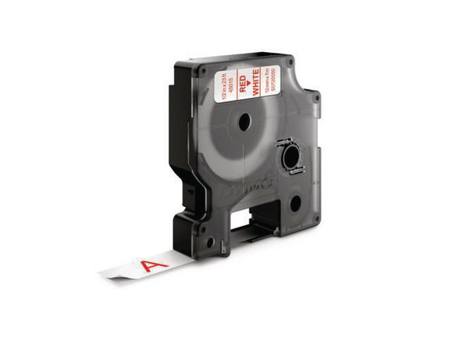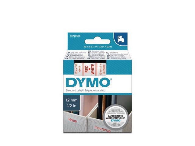 DYMO D1-etiketter erbjuder den prestanda och omväxling du behöver för alla typer av märkning, både inomhus, utomhus, på kontoret, i verkstaden, i butiken eller någon annanstans. Etikettkassetten DYMO® D1 på 12 mm ger snygga, skräddarsydda etiketter med röd text på vit botten som passar perfekt för användning både inomhus och utomhus. D1-tejp med text som har skrivits ut med termisk överföringsteknik