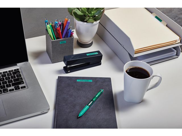 - varken bläck eller toner behövs. Dessa tåliga och hållbara etiketter är vattentåliga, UV-resistenta och de tål temperaturer mellan -18 och 90 grader. De fäster på nästan alla släta och rena ytor inklusive plast, papper, metall, trä och glas. Den självhäftande polyestertejpen är också löstagbar för kortsiktig märkning utan limrester.