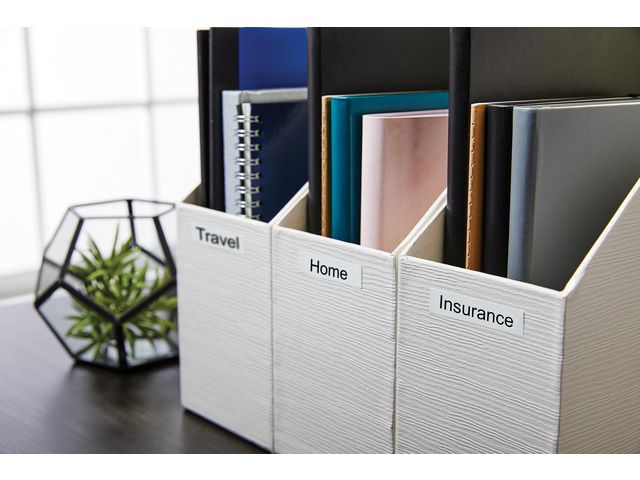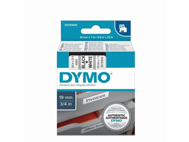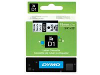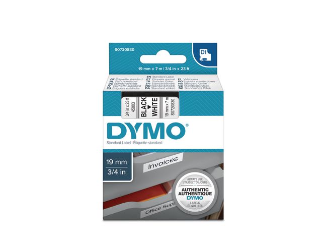 DYMO D1-etiketter erbjuder den prestanda och omväxling du behöver för alla typer av märkning, både inomhus, utomhus, på kontoret, i verkstaden, butiken eller någon annanstans. Etikettkassetten DYMO® D1 på 19 mm ger snygga, skräddarsydda etiketter med svart text på vit botten som är snabba och enkla att användas både inomhus och utomhus. D1-tejp med text som har skrivits ut med termisk överföringsteknik