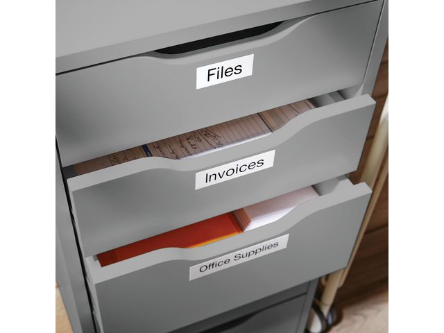 - varken bläck eller toner behövs. Dessa tåliga och hållbara etiketter är vattentåliga, UV-resistenta och de tål temperaturer mellan -18 och 90 °C. De fäster på nästan alla släta och rena ytor inklusive plast, papper, metall, trä och glas. Den självhäftande tejpen är även löstagbar för kortsiktig märkning utan limrester.