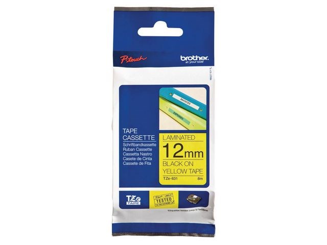 TZ-tejper tål kraftig nötning och långvarig exponering Brothers laminerade TZe-631-tejp är idealisk för användning i vardagen med en rad Brother P-Touch-etikettskrivare för att skapa gula etiketter med svart tryck som skiljer sig från mängden. Den här märkningstejpen är kompatibel med Brother P-Touch-etikettskrivare, använder direkt termisk teknik och har ett extra starkt klister. Använd inomhus eller utomhus på jämna eller gropiga, ojämna ytor. Lamineringen gör etiketterna hållbara med mindre slitage. En ljus bakgrund ger enastående kontrast för svartvita utskrifter, vilket gör att dessa etiketter utmärker sig i miljöer med svag belysning eller där det är viktigt att fånga uppmärksamhet.