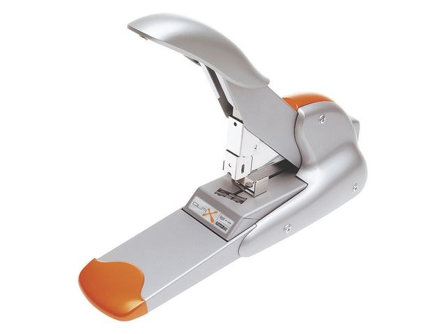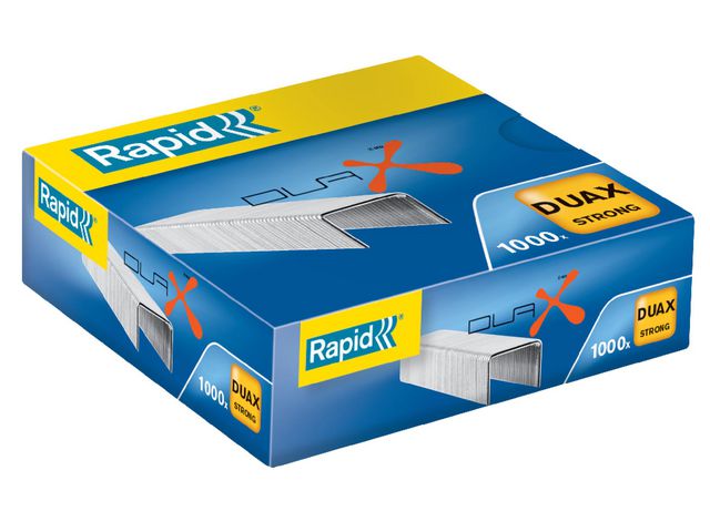 Rapid DUAX® Heavy Duty Stapler har utvecklats för effektivitet och hållbarhet. Den har en rad innovativa funktioner, t.ex. patenterad DUAX®-teknik. DUAX®-tekniken gör att häftapparaten kan häfta upp till 170 pappersark med häftklamrar i en och samma storlek. Den har även Flat Clinch-teknik, vilket innebär att baksidan av häftklamrarna är platt. Det sparar upp till 30 % utrymme vid arkivering. Den här robusta häftapparaten har en enkel mekanism för påfyllning framifrån och är idealisk för användning på kontoret, i postrummet eller i tryckerier. Den ingår i det koordinerade Power Range-sortimentet.