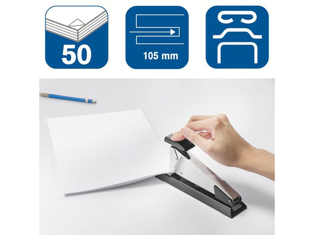 - Häftar upp till 50 ark papper på 80 g/m²