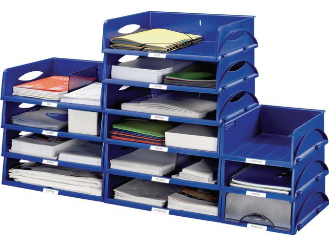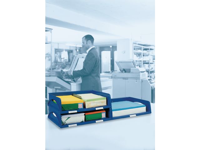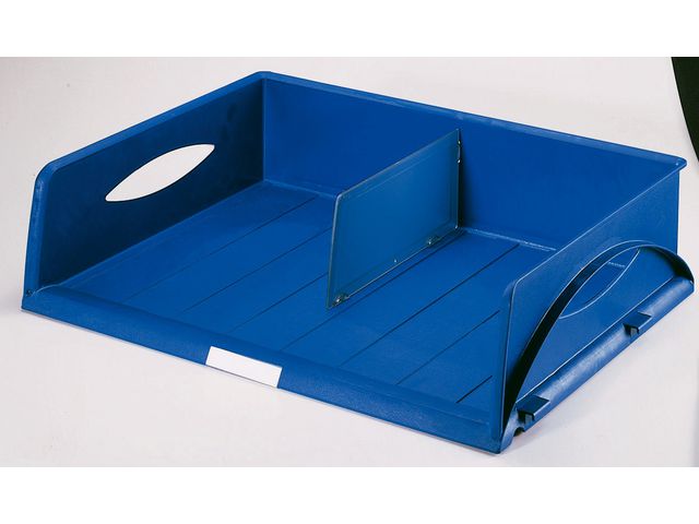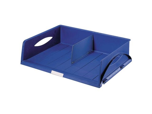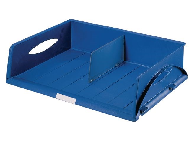 Brevkorg för stora format. Perfekt vid kopieringsmaskinen, inbindningsmaskinen eller printern.Sorty kan staplas vertikalt och sättas ihop horisontellt. 1 avdelare medföljer. För formaten: A4/A3/B3/C4. Mått: (BxHxD) 508x127x380mm. Blå.