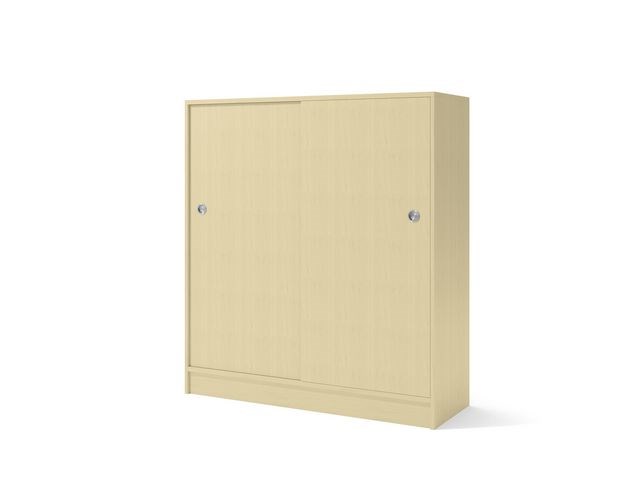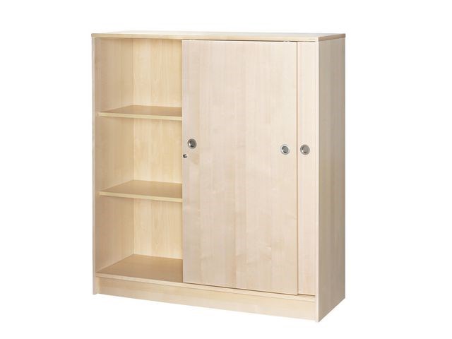 Skåp med skjutdörrar och två hyllplan. Björklaminat. Mått: 132,5 x 120 x 41,5 cm (HxBxD). Levereras med färdigmonterad stomme. - Vill man ha med lås så är det följande artikelnummer: Art 851082 -