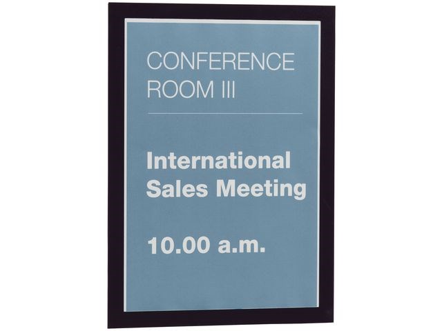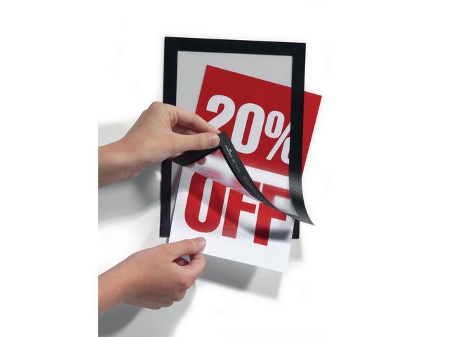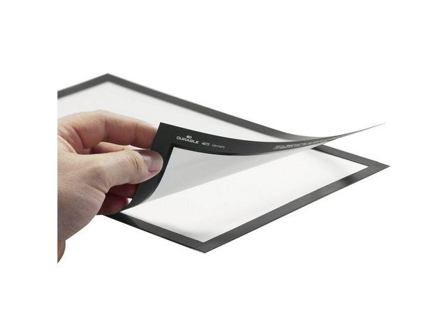 Lättanvänd, självhäftande inforam för att visa olika typer av information på ett stilfullt sätt. För dokument i A5 format. Använd självhäftande DURAFRAME® inforamar för att visa och presentera kampanjerbjudanden, öppettider, skyltar och annan tillfällig eller mer varaktig information på ett professionellt sätt. Enkelt att sätta i eller skifta budskap genom att lyfta framsidan med magnetstängning. Lätt att sätta upp