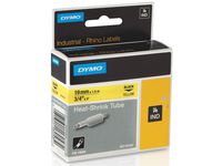 Etiketterna fäster ordentligt på sladdar, kablar, krökta ytor och ytor med struktur. Slitstarkt material tål skador när det dras genom trånga utrymmen eller rörledningar. Följer RoHS Värmekrympbara Dymo-etiketter som både gör det enkelt att identifiera kablar och skyddar viktiga kabelpunkter genom att ge dem strukturhållfasthet. De utskrivna etiketterna har ett krympningsförhållande på 3:1, vilket gör att de kan fästas på en mängd olika kabelbredder. Texten på etiketten bleks inte och smetas inte ut under krympningsprocessen