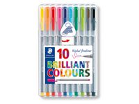 Vattenlöslig, kan enkelt tvättas bort från textilier. Ergonomisk triangelformad pennkropp och superfin metallklädd spets gör de här STAEDTLER triplus® fineliner 334-pennorna hållbara och bekväma att använda. Den här finelinerpe... Läs mer