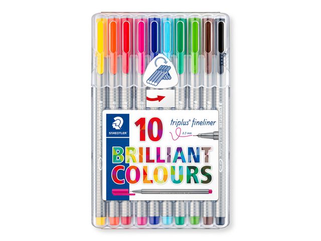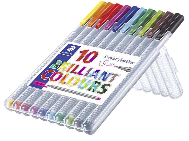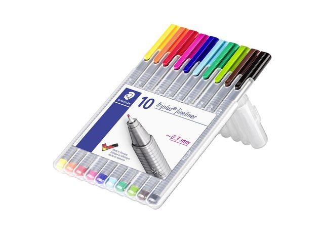 Vattenlöslig, kan enkelt tvättas bort från textilier. Ergonomisk triangelformad pennkropp och superfin metallklädd spets gör de här STAEDTLER triplus® fineliner 334-pennorna hållbara och bekväma att använda. Den här finelinerpennorna är perfekta att skriva och rita med och har vattenbaserat bläck som inte torkar även om du glömmer att sätta på korken under flera dagar. Den triangelformade pennkroppen ger en avslappnad och bekväm skrift medan den superfina metallklädda spetsen gör den hållbar och ger en enkel skrivupplevelse. Triplus® fineliner-sortimentet innehåller klara färger med lång hållbarhet. Flygplanssäker, läcker inte under flygresor.