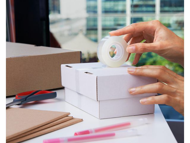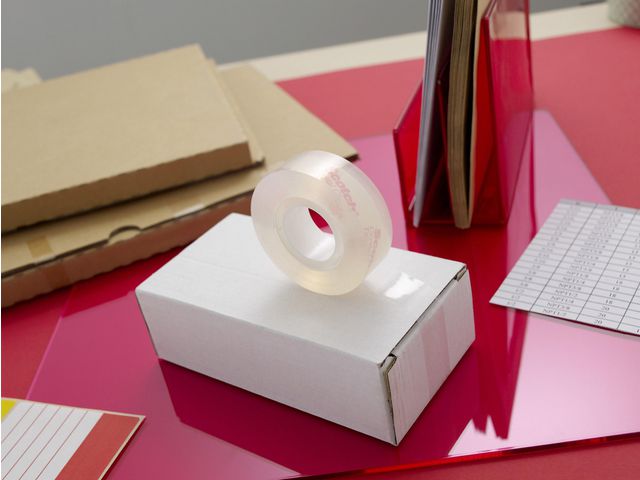 Den här blanka Scotch®-tejpen är mycket pålitlig och stark och har genomskinliga egenskaper som gör den svår att se på paket eller papper. Den kan användas för många olika ändamål på kontoret, hemma eller i skolan. Tejpen kan appliceras på många olika ytor för att ge en stark fästning. Den är också mycket enkel att riva loss och hantera. En skrivbordshållare är valfri men inte nödvändig eftersom du enkelt kan riva loss tejpen för hand. Oavsett om du fäster ihop papper, lagar en liten kartong eller slår in presenter är denna tejp för allmän användning ett mycket mångsidigt val. Varje tejprulle är 19 mm x 33 m och levereras i förpackningar om en rulle.