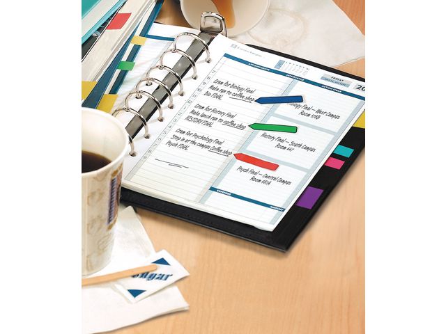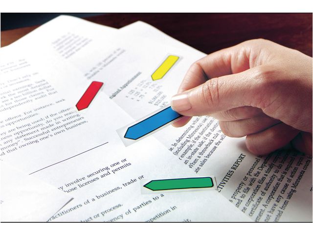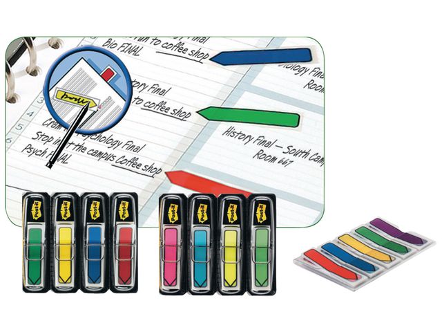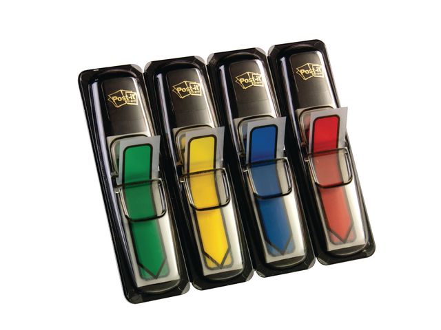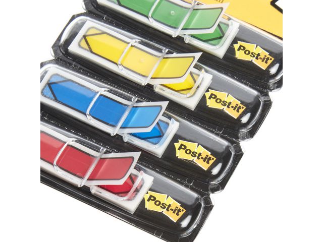 Dessa iögonfallande Post-it®-indexpilar är gjorda för att du ska kunna skriva på dem, fäster säkert på dokument och levereras i en praktisk plasthållare. Post-it®-indexpilar är den perfekta lösningen för en mängd olika uppgifter på kontoret eller i hemmet, t.ex. märkning av viktiga sidor i tjocka läroböcker, markering av viktiga deadlines i rapporter och mycket mer. Om du behöver markera ställen på ett tydligt sätt för senare hantering kommer dessa små, pilformade markörer definitivt att fånga din uppmärksamhet. Den här förpackningen levereras i ett urval av klara färger och det finns tillräckligt med plats för att skriva en liten rubrik. Med dessa små Post-it®-pilar kan du markera specifika ord var som helst på en sida, men de döljer inte text eller bilder, eftersom de är transparenta. De är ett perfekt hjälpmedel för att färgkoda viktiga dokument, kataloger eller mappar för senare referenshantering och levereras i prydliga löstagbara plasthållare.