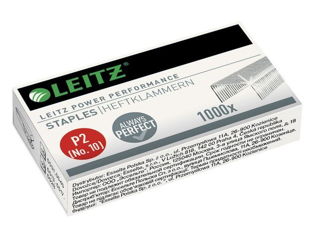 Du kan effektivt stapla samman flera sidor med Power Performance P2-klamrar från Leitz®, som har en benlängd på 4 mm. Leitz® Power Performance P2-klamrar är utformade för att häfta upp till 10 ark åt gången med en tjocklek på 80 g/m². Dessa refiller som är kompatibla med den elektriska häftapparaten Leitz® 5530, tången Allura 5539 och 5545, räcker länge och håller hög kvalitet. Dessutom kan dessa klamrar enkelt förvaras tack vare deras kompakta förpackning.