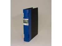 Tillverkad i 95% återvunnen polypropylen plast. Kan återvinnas utan demontering, då den är tillverkad helt och hållet i PP-plast. Patenterad mekanism i plast för enkel och säker användning. Den är lätt och smidig i modern design. Etikettmallar finns på www.keba.se. Svensktillverkad, 5 års garanti. 20 st/förp. A4, helrygg 55 mm, blå/svart.
