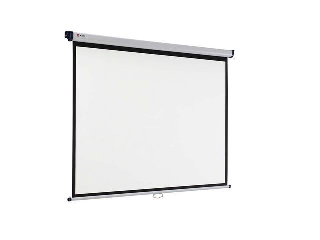 Den här väggmonterade projektorduken på 1 500 x 1 138 mm ger skarpa bilder för presentationer när den används med digitala eller OH-projektorer. Montera duken på väggen eller i taket och dra sedan in den i höljet när den inte a... Läs mer