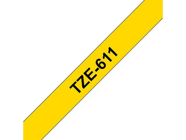 Brothers laminerade TZe-611-tejp är idealisk för användning i vardagen med en rad Brother P-Touch-etikettskrivare för att skapa gula etiketter med svart tryck som skiljer sig från mängden. Den här märkningstejpen är kompatibel med Brother P-Touch-etikettskrivare, använder direkt termisk teknik och har ett extra starkt klister. Använd inomhus eller utomhus på jämna eller gropiga, ojämna ytor. Lamineringen gör etiketterna hållbara med mindre slitage. En ljus bakgrund ger enastående kontrast för svartvita utskrifter, vilket gör att dessa etiketter utmärker sig i miljöer med svag belysning eller där det är viktigt att fånga uppmärksamhet.