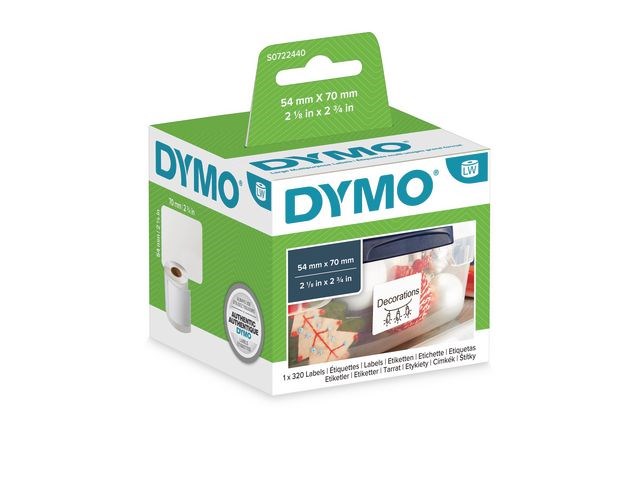 Dymo LabelWriter stora universaletiketter har en permanent självhäftande baksida som enkelt kan avlägsnas från underlaget. DYMO® LabelWriterT stora universaletiketter ger snygga, skräddarsydda etiketter på 70 x 54 mm som är perfekta för långa adresser, filhantering och organisation i hemmet eller på kontoret. LabelWriterT-etiketter ger högkvalitativa utskrifter med maximal prestanda. Etiketterna lossnar lätt utan att lämna rester och kan skrivas ut en i taget vid behov för att skapa mindre avfall och undvika trassel. Tack vare termisk överföringsteknik behövs varken bläck eller toner vid utskrift. Levereras med en rulle som innehåller 320 etiketter, vilket ger en kostnadseffektiv lösning för dina märkningsbehov.