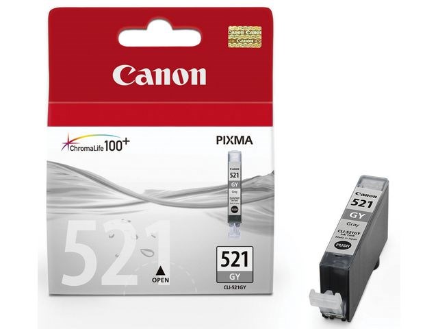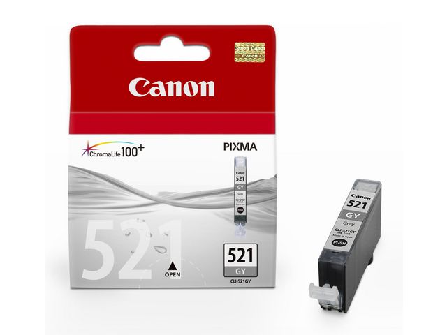 Canon CLI-521GY grå bläckpatron som tillverkas med särskilt sammansatt, högklassigt bläck ger tillförlitlighet och utmärkta utskriftsresultat. Vid användning tillsammans med papper med Canons varumärke ger den här bläckpatronen hållbara utskrifter med en kladdfri och färgbeständig yta. Den här bläckpatronen är tillverkad med Canon ChromaLife100+-systemet för att säkerställa utskrifter av överlägsen kvalitet. Bläckpatroner med Canons varumärke har utvecklats för att fungera felfritt tillsammans med din Canon-skrivare.