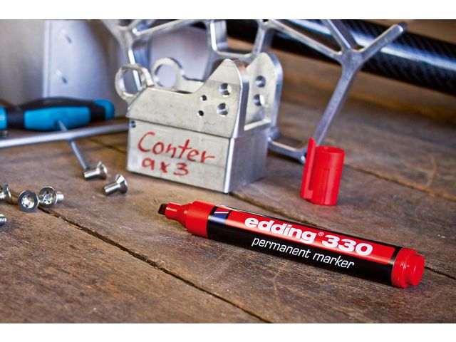 Den permanenta märkpennan Edding 330 är utformad för mångsidig användning och kan användas på nästan alla slags ytor. Den här permanenta märkpennan innehåller bläck som torkar snabbt och är smetfritt och vattenbeständigt, vilket hjälper dig att skriva tydligt och fläckfritt. Den är speciellt utformad för mångsidig användning och kan användas i flera olika sammanhang. Den permanenta märkpennan Edding 330 har en snedskuren spets som ger 1-5 mm linjebredd och den passar utmärkt när du vill ha fet och flödande text. Det ger jämn skrift på nästan alla slags ytor, bland annat plast, metall, glas och trä. Märkpennan har en lätt design, vilket gör den extremt bekväm och enkel att använda. Den levereras med kork och fickklämma, vilket gör den lätt att ta med sig.