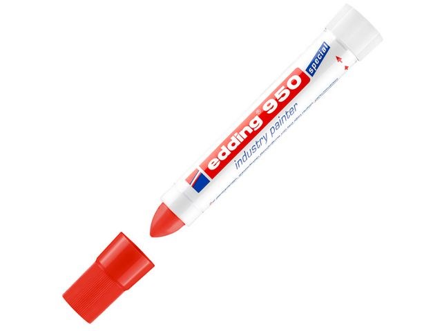 Den här Edding 950 Industry Painter-pennan innehåller en förstklassig permanent färgkräm och kan användas för att skriva på alla typer av ojämna och orena ytor. Den här märkpennan för industrin har en permanent kräm med utmärkt täckning som är ljus- och vattenbeständig när den torkat, vilket gör att den har många användningsområden. Märkpennan har en täckande kräm och är särskilt utformad för att skriva på ojämna ytor, orena material, rostig metall m.m. Edding 950 Industry Painter har en bred spets som ger 10 mm linjebredd, vilket passar utmärkt när du vill ha fet och framträdande text. Märkpennan har ett smetfritt bläck, vilket gör att du kan skriva tydligt och fläckfritt.