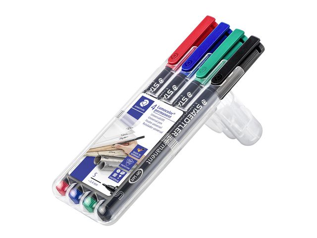 Lumocolor® permanent penna tillverkad av 97 % återvunnen pre-consumer plast, för användning på praktiskt taget alla ytor. Kan skriva på praktiskt taget alla ytor t.ex metall, plast, trä och andra icke-absorberande ytor. Utmärkt kvalitet, smutsavvisande och vattentät. Torkar på några sekunder, därför idealisk för vänsterhänta användare. Permanent, luktfritt bläck. Ljusäkta och väderbeständig i svart färg. PP skaft och hätta säkerställer lång livslängd. kan ligga utan hätta i dagar utan att torka ut. Flygsäker