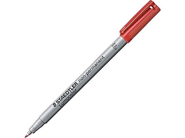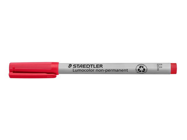 Lumocolor® non-permanent penna tillverkad av 97 % återvunnen pre-consumer plast, för användning på nästan alla ytor. Lämplig för overheadfilm, kan torkas av med en fuktig trasa. Vattenlösligt bläck. Snabbtorkande. PP-skaft och hätta garanterar lång livslängd. Flygsäker