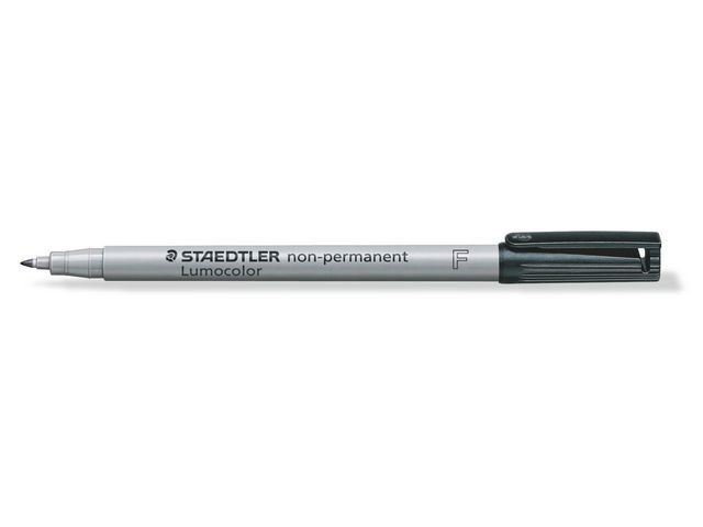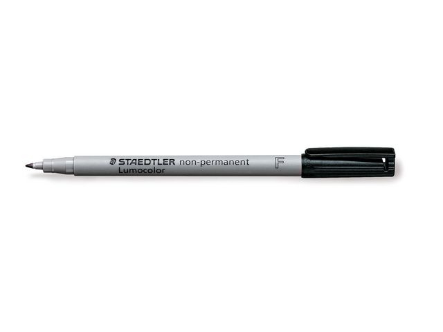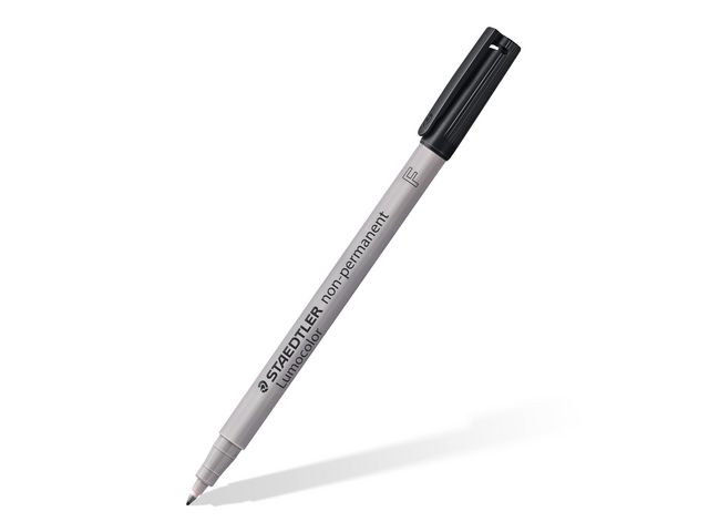 Lumocolor® non-permanent penna tillverkad av 97 % återvunnen pre-consumer plast, för användning på nästan alla ytor. Lämplig för overheadfilm, kan torkas av med en fuktig trasa. Vattenlösligt bläck. Snabbtorkande. PP-skaft och hätta garanterar lång livslängd. Flygsäker