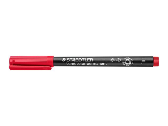 Lumocolor® permanent penna tillverkad av 97 % återvunnen pre-consumer plast, för användning på praktiskt taget alla ytor. Lämplig för overheadfilm. Även lämplig för användning på CD/DVD samt märkning på metall, plast, trä och andra icke-absorberande ytor. Utmärkt kvalitet, smutsavvisande och vattentät. Torkar på några sekunder, därför idealisk för vänsterhänta användare. Permanent, luktfritt bläck. PP skaft och hätta säkerställer lång livslängd. kan ligga utan hätta i dagar utan att torka ut. Flygsäker