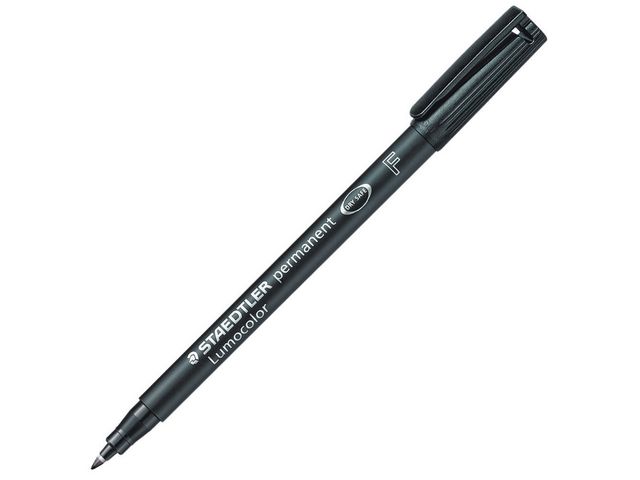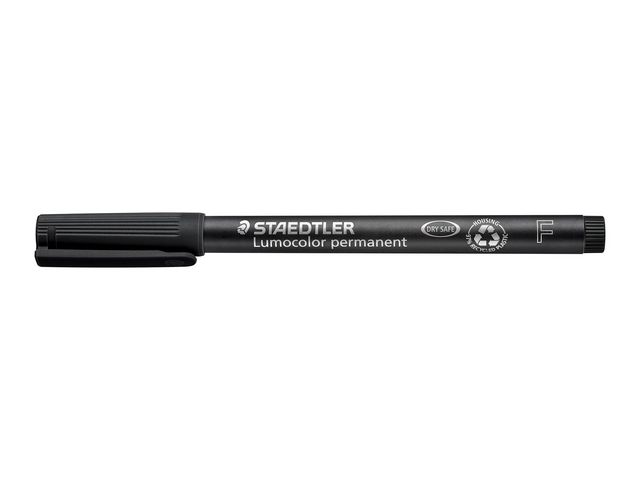 Lumocolor® permanent penna tillverkad av 97 % återvunnen pre-consumer plast, för användning på praktiskt taget alla ytor. Lämplig för overheadfilm. Även lämplig för användning på CD/DVD samt märkning på metall, plast, trä och andra icke-absorberande ytor. Utmärkt kvalitet, smutsavvisande och vattentät. Torkar på några sekunder, därför idealisk för vänsterhänta användare. Permanent, luktfritt bläck. Ljusäkta och väderbeständig i svart färg. PP skaft och hätta säkerställer lång livslängd. kan ligga utan hätta i dagar utan att torka ut. Flygsäker