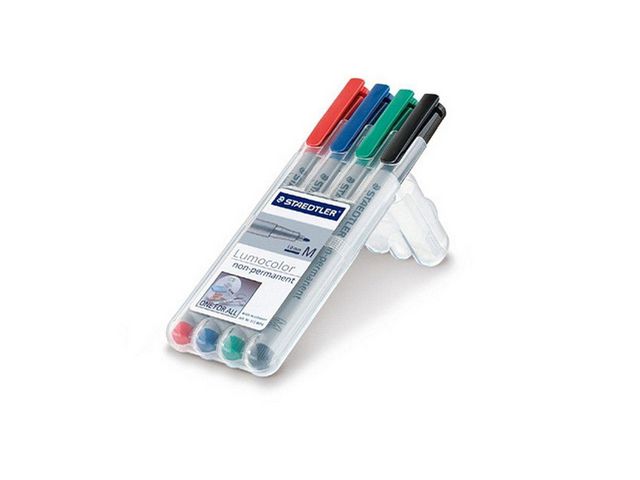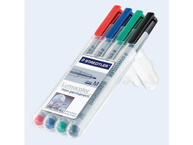 Lumocolor® non-permanent penna tillverkad av 97 % återvunnen pre-consumer plast, för användning på nästan alla ytor. Lämplig för overheadfilm, kan torkas av med en fuktig trasa. Vattenlösligt bläck. Snabbtorkande. PP-skaft och hätta garanterar lång livslängd. Flygsäker