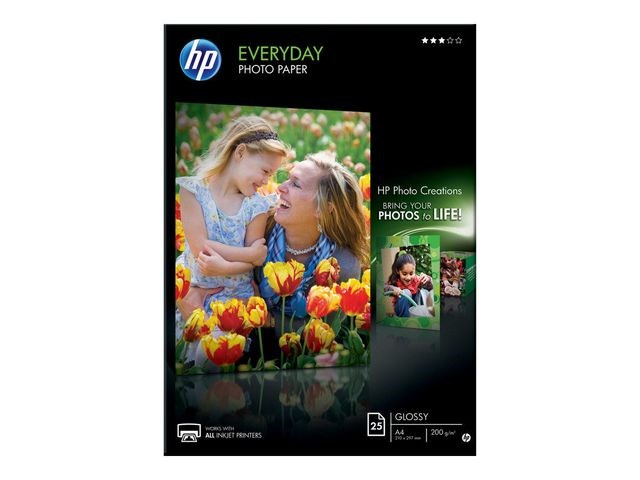 Det här glättade, återvinningsbara papperet torkar snabbt för att vara enkelt att hantera. Med HP glättat vardagsfotopapper får du färgrika vardagsfoton till låg kostnad. Det här glättade, återvinningsbara papperet torkar snabbt för att vara enkelt att hantera. Passar till alla HP bläckstråleskrivare.